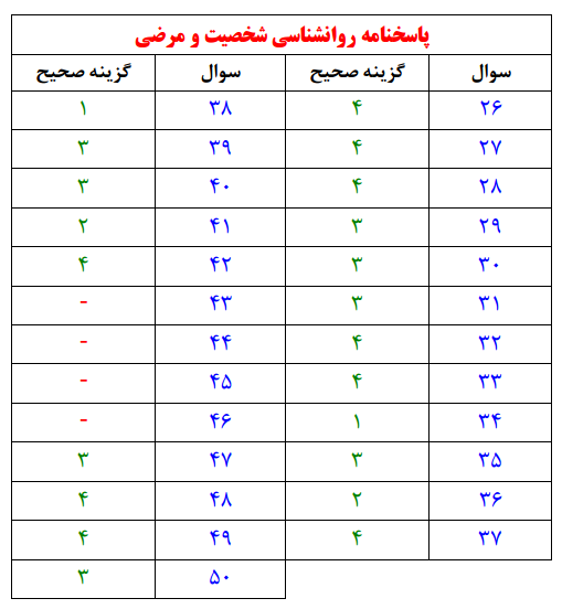 ارشد روانشناسی ۱۴۰۳ : کلید اولیه ارشد روانشناسی ۱۴۰۳