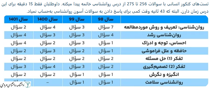 نمونه تست های کنکوری درس روانشناسی